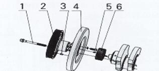 1、皮帶輪螺栓 2、皮帶輪 3、圓柱銷(xiāo) 4、硅油減振器  5、螺栓(內(nèi)六角螺釘) 6、曲軸正時(shí)齒輪