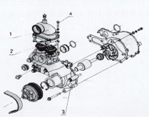 1、氣缸蓋罩 2、導(dǎo)流罩3、上呼吸器墊片 4、上呼吸器焊接件 5、通氣軟管