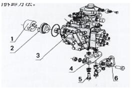 1、噴油泵 2、連接板 3、油泵齒輪  4、提前器