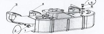 拆卸機(jī)油集濾器組件,只需把集濾器緊固螺栓4及集濾器支架螺栓5松脫即可。注意:在使用過(guò)程中集濾器支架容易破裂,注意檢查。