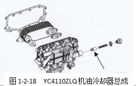 單體式的YC6105ZLQ、YC6112機(jī)型機(jī)油散器拆卸時(shí)只需把散熱器蓋上的出