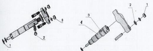 拆下壓板上的兩個(gè)緊固螺母3,取下壓板、密封墊、噴油器及噴油器墊片。注意:按數(shù)量將銅墊與相對(duì)應(yīng)的噴油器配對(duì)存放,并用適量黃油粘住墊片,以免弄丟墊片,同時(shí)對(duì)噴油器按相應(yīng)的缸號(hào)做好標(biāo)識(shí)。
